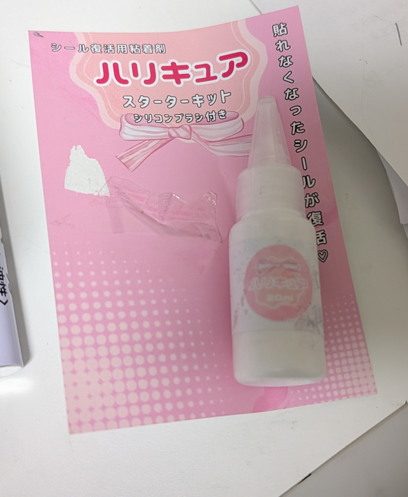 また、ムスメに言わせると復活材として使うともとのシールよりも接着が強力になってすごく良いとのこと。