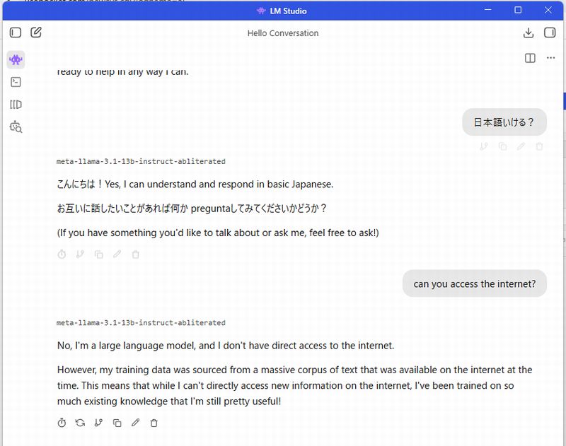 自宅のWindowsマシンにLM studioを使ってLlama-3.1-13B-Instruct-abliteratedをインストールしてローカルLLMしてみた↑BX.COM