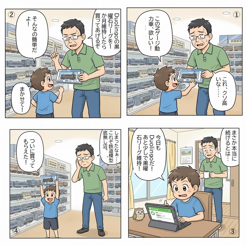 nano-bananaさん、うちのブログのこのページを4コマ漫画にして!↑BX.COM