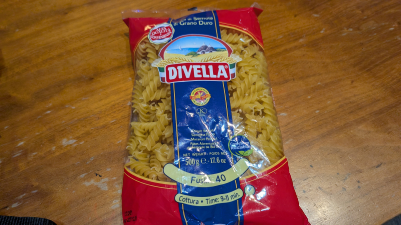 変わった形のパスタ、先日買った早ゆでパスタがまずかったので少し肉厚タイプを購入。