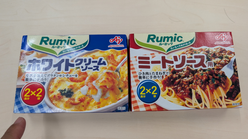 味付けに関してダイソーでいくつか新たな商品を試し中。ホワイトクリームソースと、ミートソースはカレーのルーのような形状を期待して買ったんだけど単なるパウダーだった。油分が含まれておらずイマイチかな。箱にも書いてあるように、牛乳やひき肉など油分を含むものを加えないと味がしまらない。