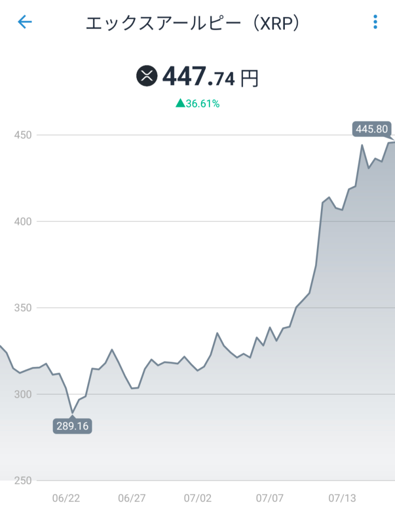 イーサリアムさんが久しぶりに50万円突破、リップルさんも450円ぐらいまで頑張る