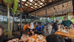 仕方ないのでGrabでも読んでフェリーターミナルに行こうとしたんだけど、アプリをポチってもいつまでたってもドライバーとマッチしない。エントランスをうろうろしているスタッフに「Grab呼んでも来ないんだけど」っていうと、このへんはGrabなんていないよー、あれはジャカルタとか都会だけ。と言われる。