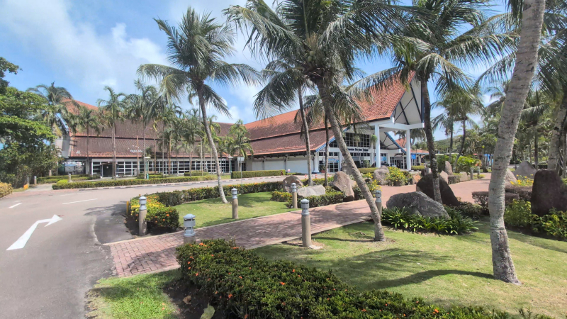周辺の地図、左上の出っ張っているところがフェリーターミナル。右上の人工ラグーンの右端がホテルのエントランス。2kmほどの距離ですね。周囲は森ですが、走ったり歩いたりして自分でいけそうですが、よく知らない場所なので滞在中に自分だけで外出はしませんでした。どれぐらいの治安なんだろうか。