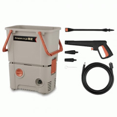 水の量はかなり少ないのでタンクタイプでも良かったかもしれない↓箱には1時間あたりの水の量は250〜350リットルと書いてある。1分あたり5リットルほどであり。たいていの作業は5分もあれば終わるはずなのでタンク式の方が使い勝手が良いかもしれない。もちろん水道直結でも使えるっぽい。