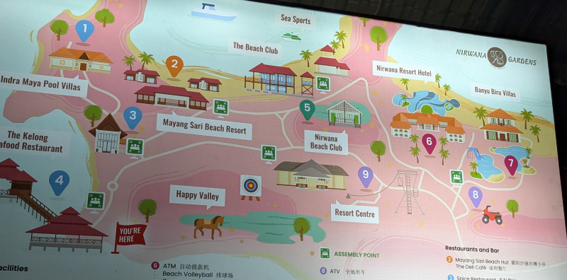 レストランのエントランスに貼ってあったこのあたり一帯の「ニルワナガーデン」の地図。ここに泊まると1週間ぐらい楽しめるぐらい色々とあったのかも。相場等は未確認です。