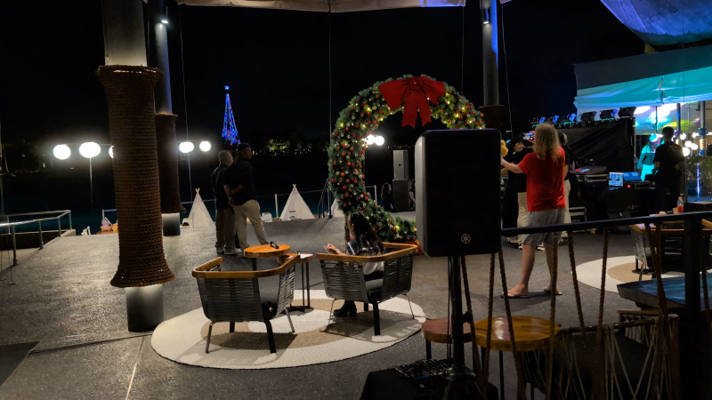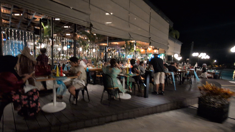 宿泊しているホテル「ナトラビンタン」だけじゃなく隣のホテル「The ANMON Resort Bintan」も大騒ぎ中。ナトラビンタンはレストランの一角を演奏スペースにしているだけだけど、どうやら隣は大きなステージを作り派手にやっているみたい。