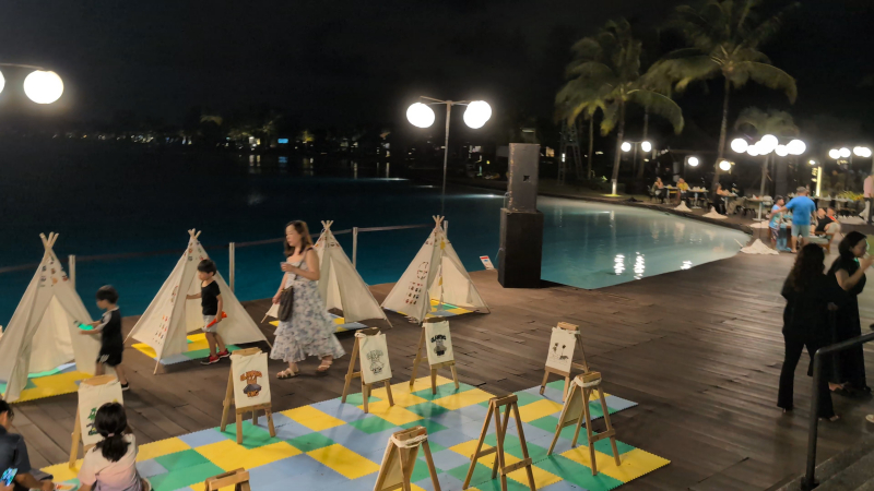 レストランの横には子供用のちいさいテントが張ってありました。その手前にはキッズ用のお絵描きスペース。うちの子達は興味が無いようでした。