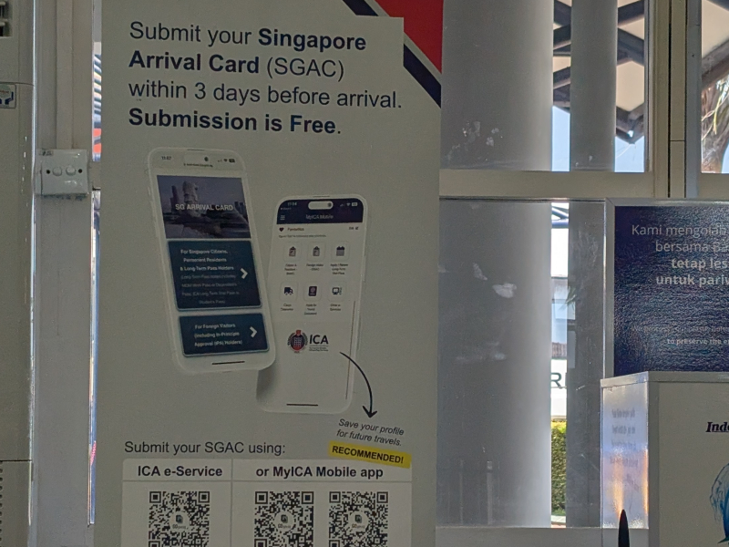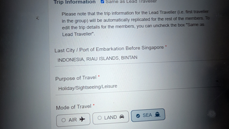 前日にシンガポールの再入国に必要なアライバルカードの手続きをWebで行います。ここで前泊地のビンタン島の地名が分からず少し困りました。詳細は忘れましたが「ビンタン島」って選択肢が見つからないのです。色々調べた結果「Indonesia, Riau islands, Bintan」ってのが正解みたい。どうやらビンタン島は「リアウ諸島州」に属しているとのこと。島の名前が地名じゃないのはまあ日本でも同じだね