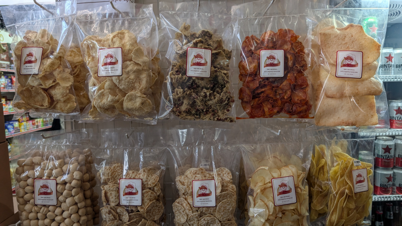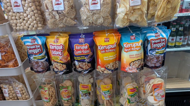 両替したインドネシアの紙幣が余っていたので、キャッサバ芋チップスとか、ドライフルーツとか、ドリアンチョコとか買いました。