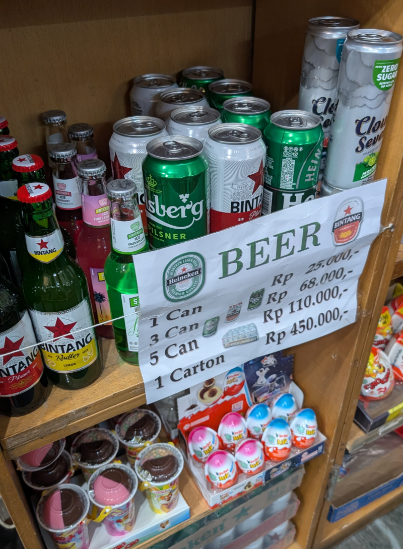 フェリーターミナルで売っているビール。100RP=1円なのでビール1缶250円ぐらい。