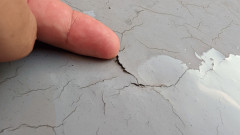 一番ひび割れが激しい部分(凹凸がは少し厚みがなりなかったのかこのような感じ。粘性が高すぎてひび割れの内部まで入っていかないみたい。1.5倍ぐらい薄めて2回ぐらい塗るつもりの方が良いかな?