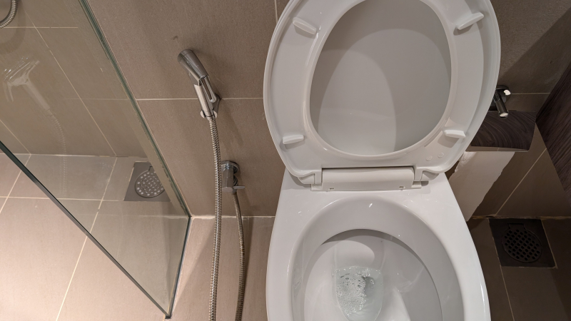 トイレにはビンタン島のホテルでもあった「こびりつき」を流すためのシャワーがついている。これ掃除に便利。