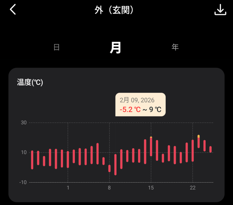 と思って家のあちこちに設置しているTP-LINK Tapoの温度センサーの記録を見ていると
