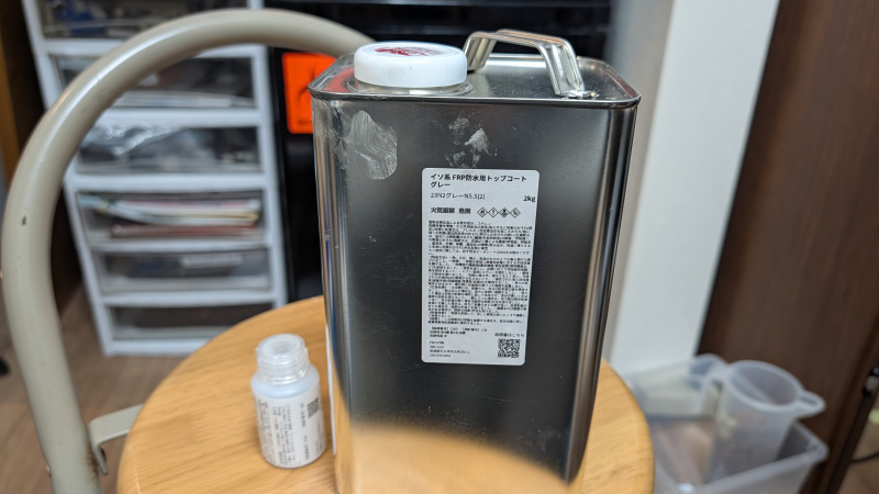 この手のトップコートには「イソ系」と「オルソ系」があり、イソ系はイソフタル酸系不飽和ポリエステル樹脂のことで耐久性が高いらしい。