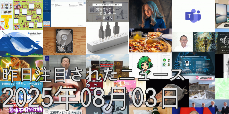 ●2025年8月1日のヘッドラインニュース(GIGAZINE) 27 users
