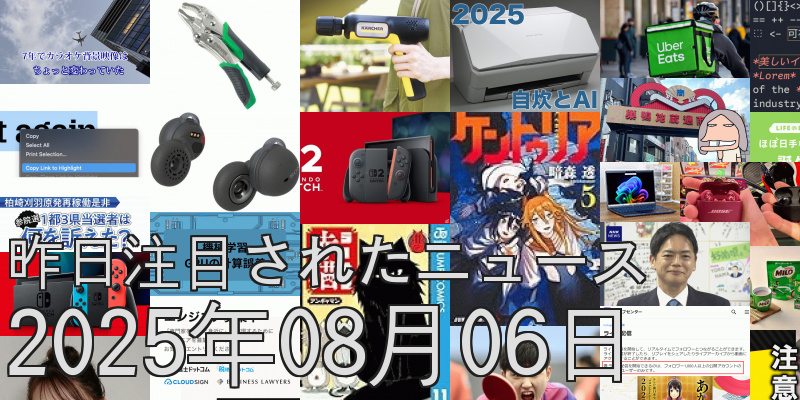 08月7日(木)昨日の注目ニュース100+α。昨日は「コラボ・ドコモ・グループ・生成・アニメ・応援・SALE・サマー・サポート」に関するニュースが多かったようです