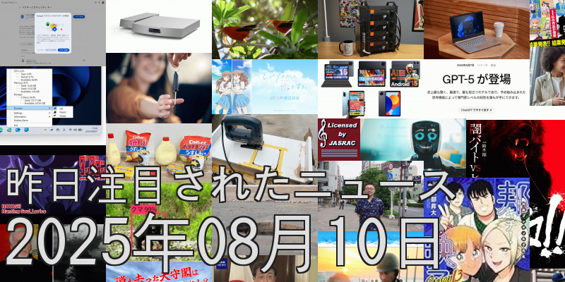 08月11日(月)昨日の注目ニュース100+α。昨日は「GPT」に関するニュースが多かったようです