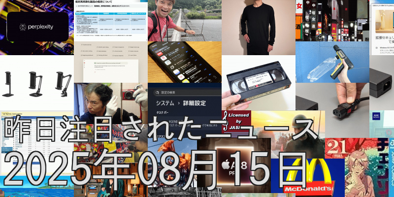 08月16日(土)昨日の注目ニュース100+α。昨日は「Apple・復活・方法・月期・機能」に関するニュースが多かったようです
