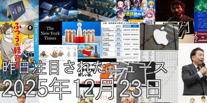 12月24日(水)本日のイベント:クリスマスイブ。マウスコンピューターの冬のボーナスセール最終日(来年からPCはメモリ高騰などで大幅値上げらしい)。火災報知器のガチャ発売。。昨日の注目ニュース100+α