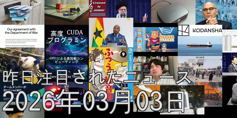 ●OpenAI、米国防総省とAI導入で合意 Anthropicへの強硬措置の沈静化を要請(はてなブックマーク - 人気エントリー - 総合) 83 users