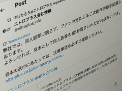 ●ニトロプラス、同人誌活動も過度の営利性がなければ許容(販売数200個以下、それ以上はアマチュア版権申請)「見本として1部送って」