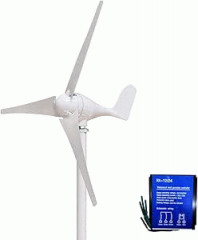 価格は50万円ぐらい。高くね?。1日当たり2kWhを発電として一定速度で風が吹いているなら100W程度?