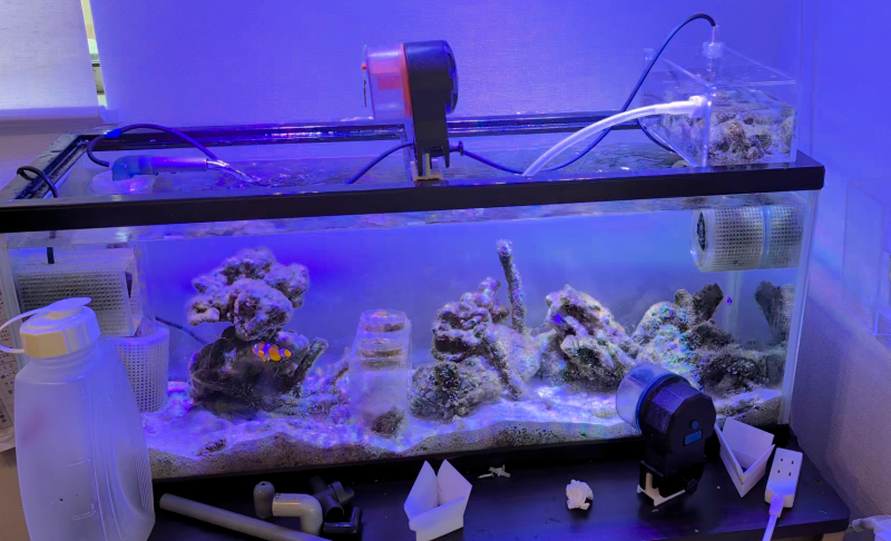 海水水槽に5mmアクリル板で自作したサブ水槽を設置、子供が海で無限に採ってくるヤドカリとかエビとか貝とか魚を入れるのに使用する↑BX.COM