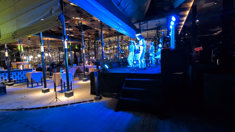 外のレストラン「ケロン」で晩飯を食べた後にホテルに帰ってきました。午後8時ぐらいかな?ホテルに近づくと大音量で大騒ぎ状態。ライブ会場かよって感じ。