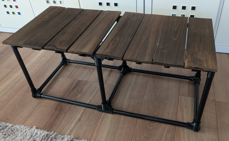 2025.07.24:VP13パイプと3Dプリンターで作ったフレーム(台)〜その3〜木の板で上面に台を装着して完成。