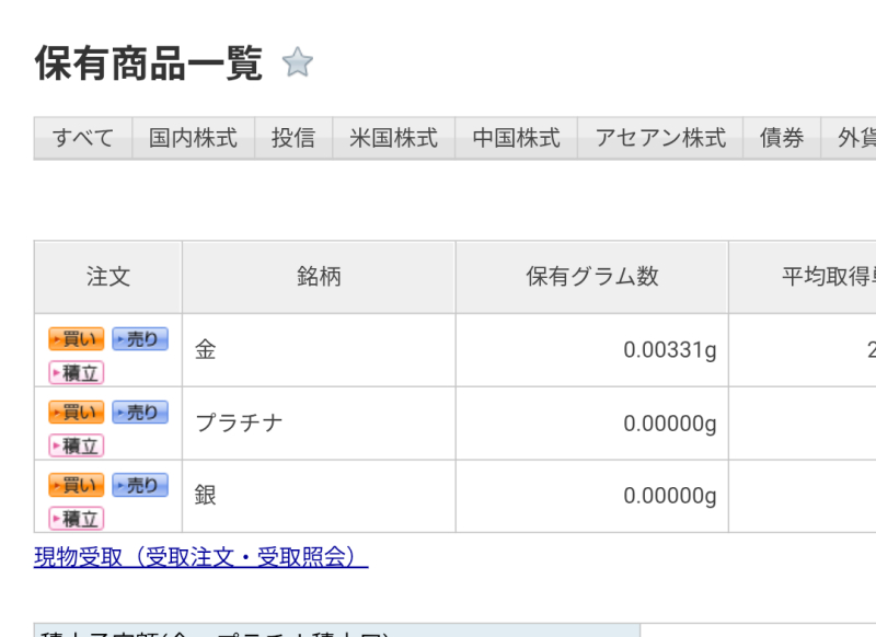 そして最近リスク対策も兼ねて株の一部を利確してその金でゴールドを100万、プラチナを100万買ったんだけどさっき現在の評価額を見たら併せて190万円になっているorz。