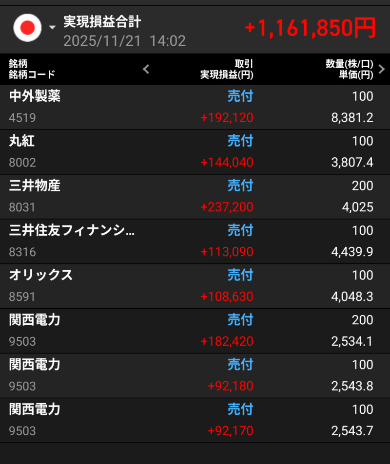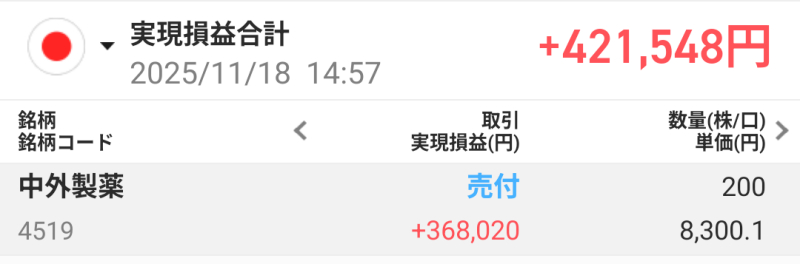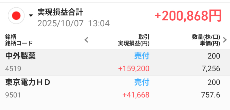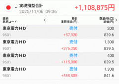 もっと上がりそうだけど軍資金が無いので中外製薬と東京電力を少し利確