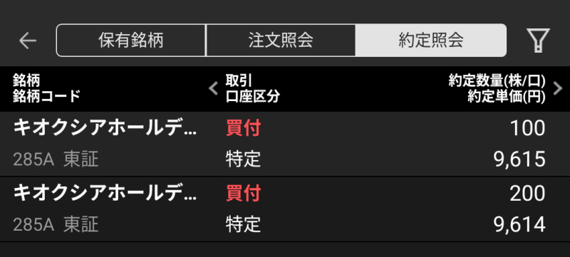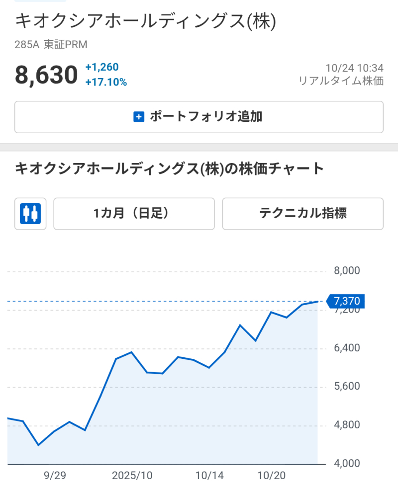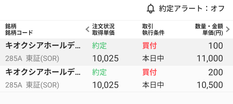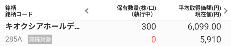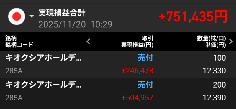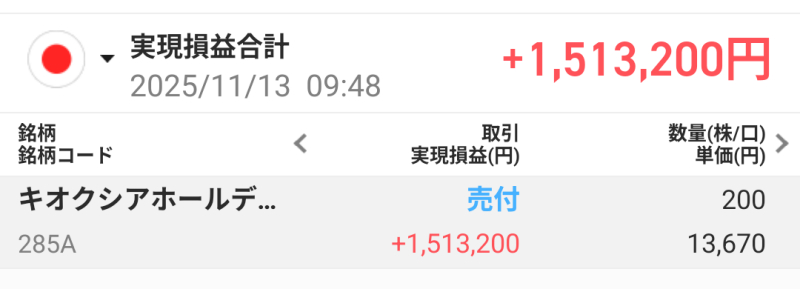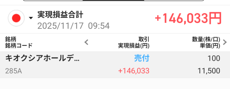 キオクシア懲りないな、爆上げしてたので300株売却。75万円ゴチ!↑BX.COM