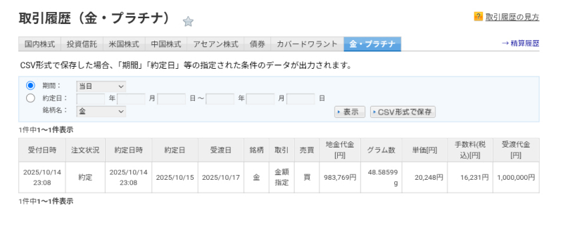 楽天証券でゴールドの積立始めたんだけど楽天証券は最小単位で100gのインゴッドでしか現物に出来ないらしい。100gって200万円か。