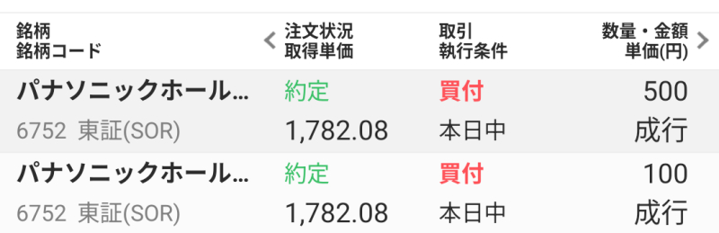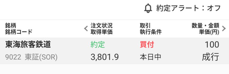 出勤前に仕込んでいたら、9時ちょうどにピコンと約定通知が