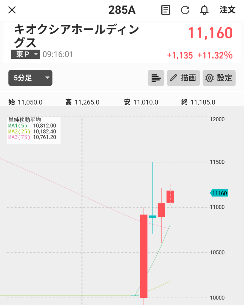 キオクシアさん、先週末のストップ安から一転、朝っぱらから10%のV時回復↑BX.COM