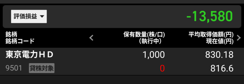 株の含み損は俺(900株)が16万円ほど。子供がそれぞれ500株で10万円ほどの含み損なので、36万円ぐらいかorz。