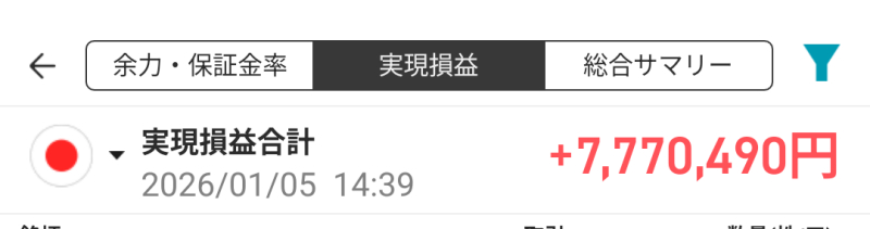 去年1年間(2025年1月〜12月)の日本株取引の実現損益合計↑BX.COM