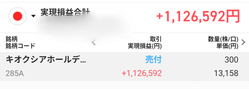 今年キオクシアの増減でいくら儲けたんだ?