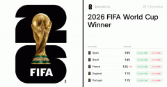 2026年のFIFAワールドカップで日本が勝つとかけている人が2%。「勝つ」にかけるのに2.6ユーロ、「負ける」にかけるのに「98.7ユーロ」
