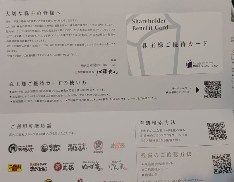 3500円分の株主優待券キターーー!!年に2回の楽しみとなりそうな家族できんぐコース行きます!!!午後3時ぐらいに行ってアホほど食べて昼夜兼用にするのがいつものパターンだな。