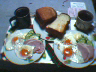 朝食兼昼食。久々に普通の食事だわ。