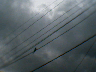 電線に止まってるのはスズメではなく、インコ。
