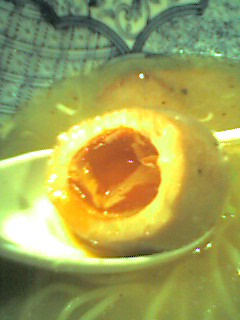 本当は海老塩ラーメン のみ\650だが、店の入り口にて玉子のサービス券をもらい食券と一緒に出す、と 味玉入りのラーメンにグレードアップ!
