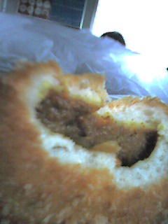 これは駅横のレストランミクニのパン。お味のほうは..。