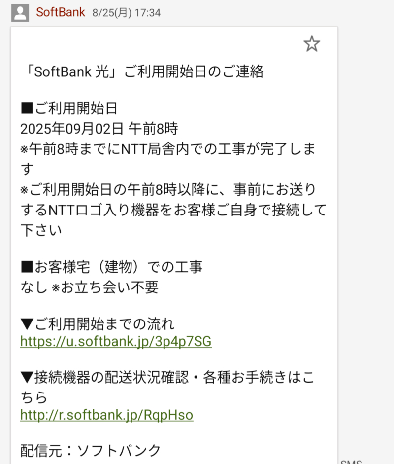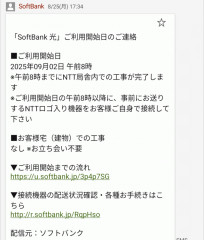 30年前に7〜8万円ぐらい払ってNTT回線引いてから早30年か?ついにフレッツ光からソフトバンク光に移行しようとしています。9月2日にソフトバンク光が開通予定
