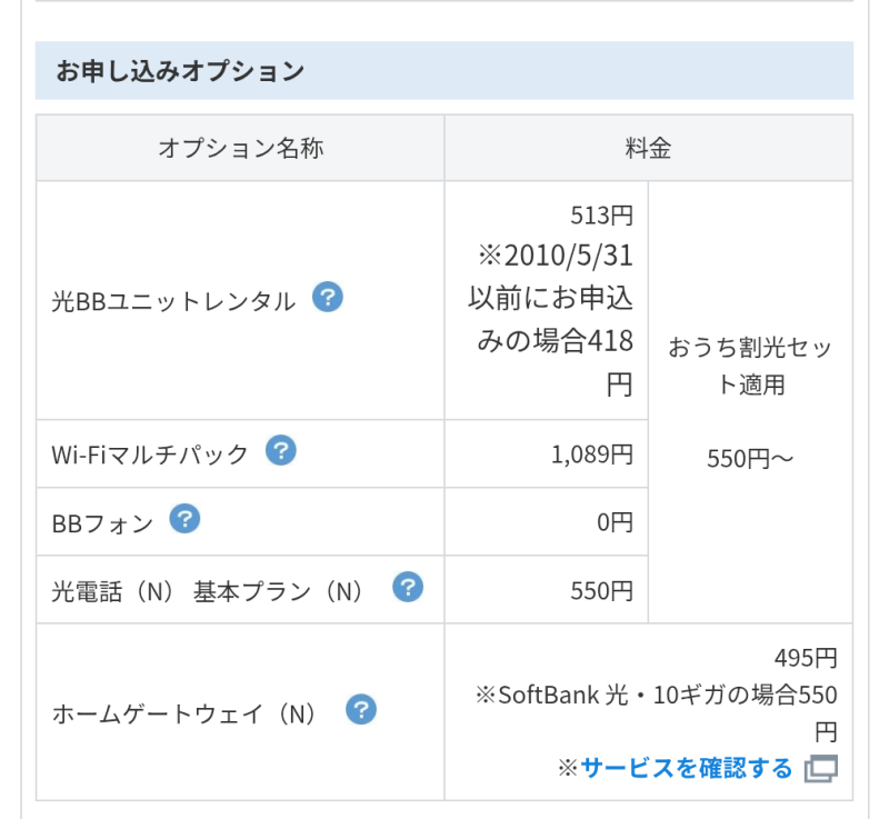 これにオプションが550円と495円で合計1045円なので月額6765円。いまいち「ホームゲートウェイ」の必要性が良く分からないののですが、光BBユニットとは何が違う?GMOとくとくBBからルーターが来るみたいだけど最終的に何個機器が来るんだ????