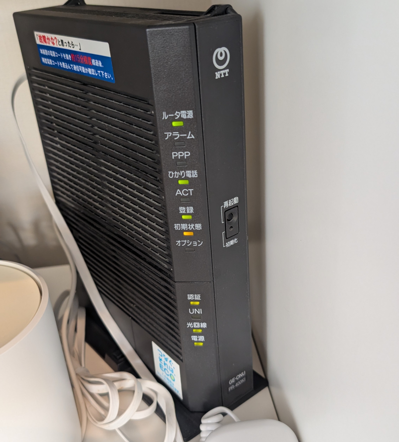 ↓白い縦長の装置が「光BBユニット」。