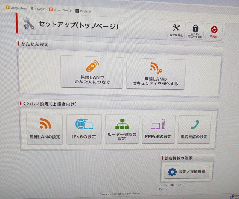 - いったん光BBユニットをはずし元の通りPR-600KIのみを接続し有線LANからPR-600KIにアクセスして初期化処理。