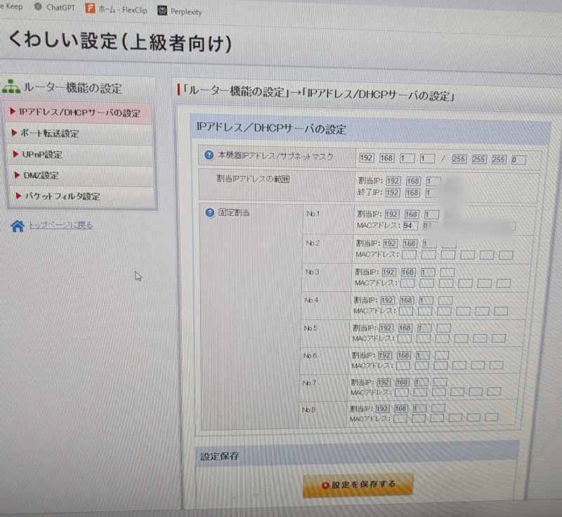 2025.09.04:ソフトバンク光開通!光BBユニットの設定メモ。ポート転送先はDHCP割り当てアドレス内である必要がある変な部分あり
